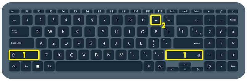 - Klavyede "-" tuşuna basın. Bu tuş genellikle klavyenin üst satırında, sayı tuşlarının hemen sağında yer alır.