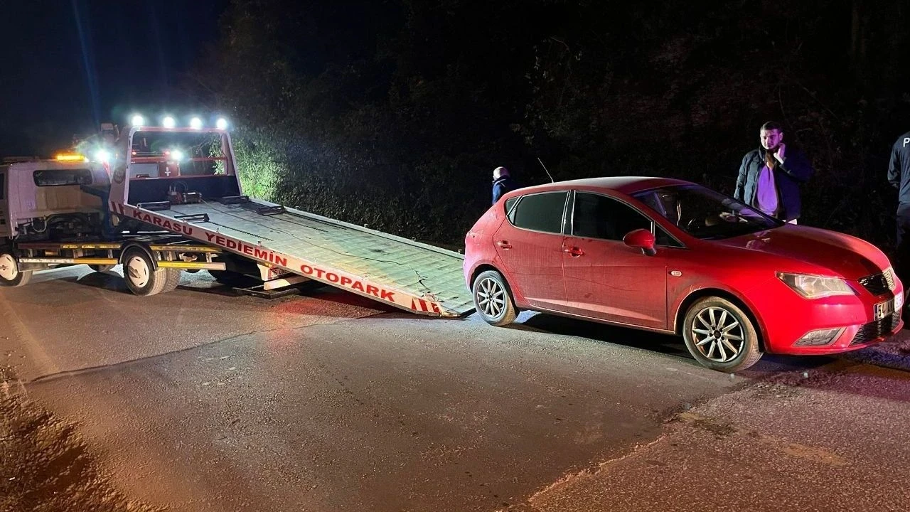Karasu Kabakoz Mahallesi İstiklal Caddesi'nde denetim yapan polis ekiplerini fark eden alkollü kadın, ters yöne girerek kaçmaya çalıştı. Ancak bu sırada direksiyon hakimiyetini kaybeden sürücü, aracıyla birlikte bir 'V' kanalına düştü.