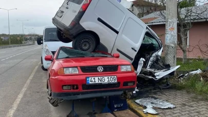 Gebze'de otomobil duvarda asılı kaldı sürücü kurtuldu