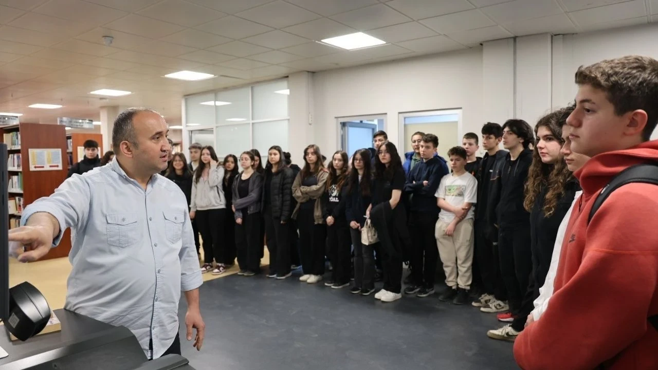 58 öğrenciden oluşan gruba, Kütüphane ve Dokümantasyon Daire Başkanlığı personelleri rehberlik etti. Şef Turgut Yürekli, öğrencilere kütüphane sisteminin işleyişi, kaynaklara erişim yolları ve kütüphane kuralları hakkında detaylı bilgiler verdi. Ayrıca, araştırmalarını yürütebilecekleri çalışma alanlarını tanıtarak, kütüphanedeki imkanları aktardı.