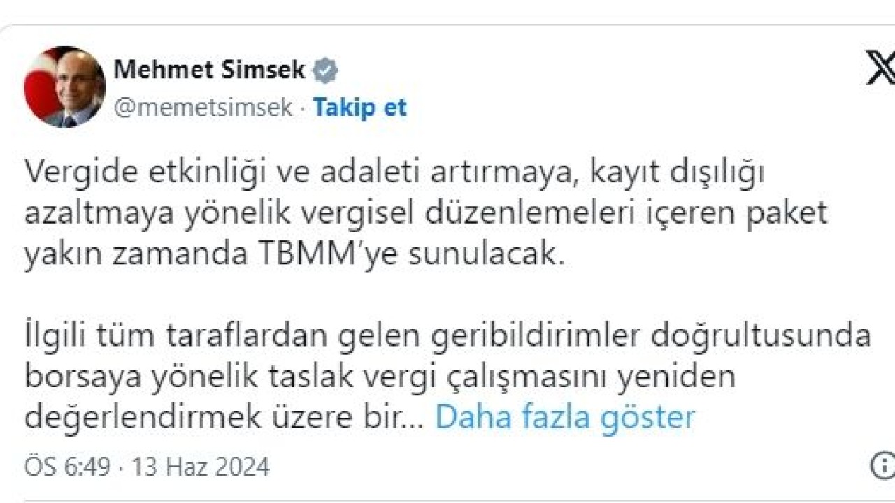 Taslakta, sadece kripto paralar değil, aynı zamanda Borsa İstanbul’da işlem gören hisse senetlerine yönelik de düzenlemeler bulunuyor. Tam mükellef kurumlara ait olan ve 2 yıldan fazla süreyle elde tutulan BİST’te işlem görmeyen hisse senetlerinin elden çıkarılmasından doğan kazançlara uygulanan gelir vergisi istisnasının kaldırılması öngörülüyor. Hazine ve Maliye Bakanı Şimşek, borsaya yönelik taslak vergi çalışmasının yeniden değerlendirilmek üzere bir süreliğine ertelendiğini duyurdu.