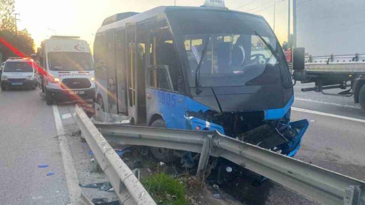Kocaeli’nin Gebze ilçesinde minibüsün yol ayrımındaki bariyere çarpması neticesinde meydana gelen kazada 15 yolcu yaralandı.