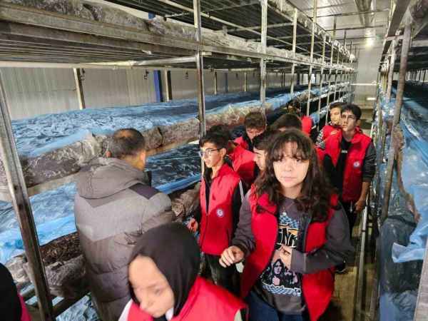 "Düzce'deki İbn-i Sina Mesleki ve Teknik Anadolu Lisesi'nin tarım branşındaki öğrencileri, Merkez Gündolaması beldesinde kültür mantarı üretiminde bulunan bir firmayı, Tarım ve Orman Müdürlüğü'nün uzmanlarıyla beraber ziyaret etti. Firma sahibi Şerif Ali Veli, mantarın üretim süreçlerini öğrencilere ayrıntılı bir şekilde anlattı. Teorik bilgilerle donanmış öğrenciler, sahada uygulamalı bilgiye de sahip oldu. Gezinin ikinci aşamasında Tarım ve Orman İl Müdürlüğü'nü ziyaret eden öğrenciler, İl Müdürü Esra Uzun'dan kurumun faaliyetleri hakkında detaylı bilgiler aldı. Esra Uzun, öğrencilere kurumun sadece bitkisel üretimle sınırlı olmadığını, hayvansal üretim, su ürünleri, kırsalda gelişim projeleri, çiftçi eğitimleri ve gıda güvenliği gibi birçok alanda faaliyet gösterdiğini belirtti ve geleceğin genç tarımcılarına kapılarının her zaman açık olduğunu ifade etti."