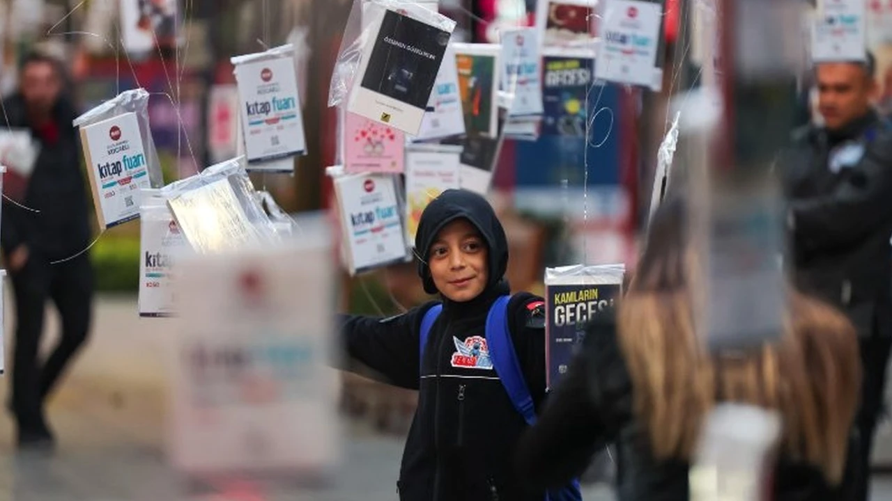 Kocaeli'de düzenlenen kitap fuarı kapsamında ağaçlara asılan kitaplar vatandaşlardan yoğun ilgi gördü.