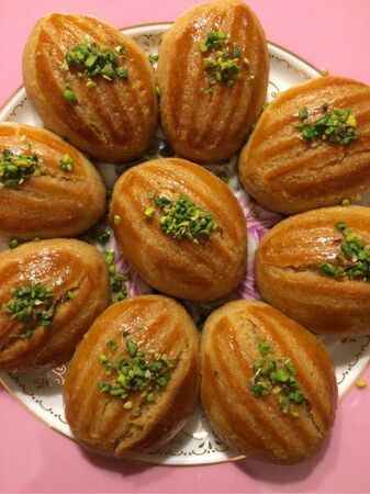 Üzerlerine bastırarak ortalarını çukur hale getirin ve fıstık veya hindistancevizi içi koyun. Önceden ısıtılmış 180 derece fırında altın rengini alana kadar pişirin.