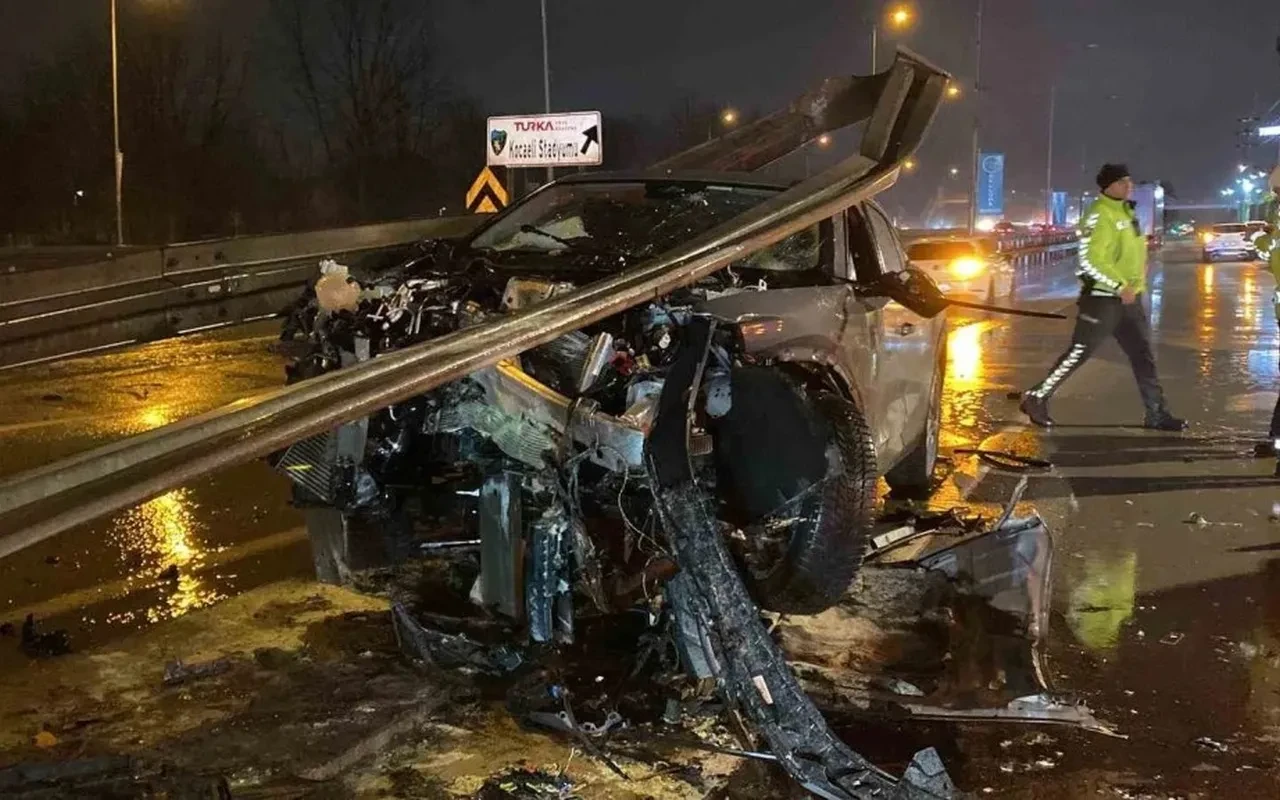 Kocaeli’de ters yönden giren araç bariyerlere çarptı. Olay Kartepe ilçesi Ankara Caddesi’nde meydana geldi.