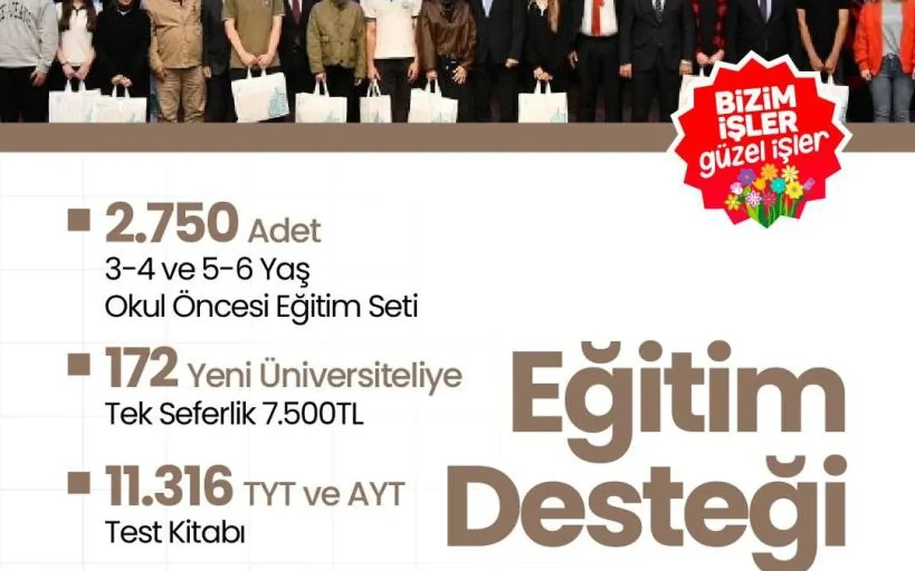 Başarılı öğrencilere nakdi destek ve test kitapları verildi. Okul öncesi ve ilkokul öğrencileri için eğitim setleri dağıtıldı.