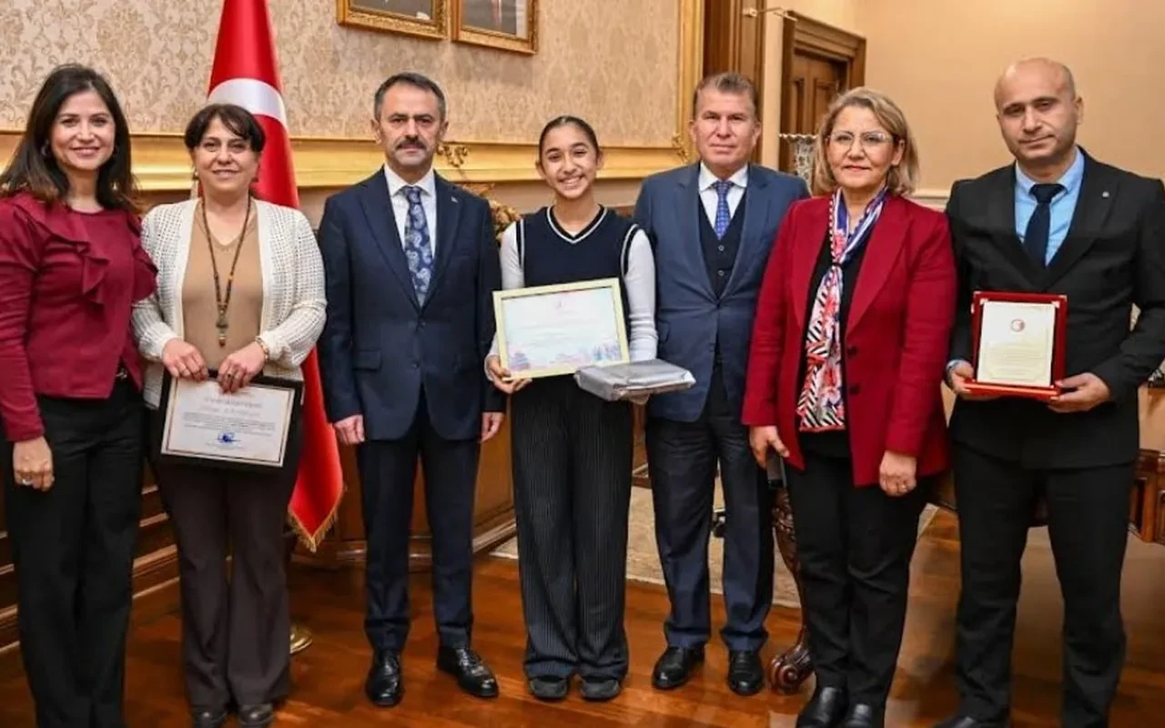 Ticaret Bakanlığı’nın düzenlediği yarışmada il birincisi olan Ada Aydemir, Vali İlhami Aktaş’la görüştü. Ziyarette öğrencinin eseri ve başarısı konuşuldu.