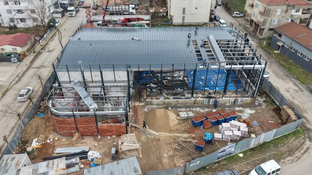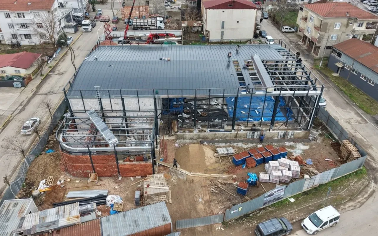 Çelik konstrüksiyon montajı tamamlanan spor salonunda çatı ve elektrik çalışmaları yapılıyor. Tesisin tamamlanması yakın zamanda planlanıyor.