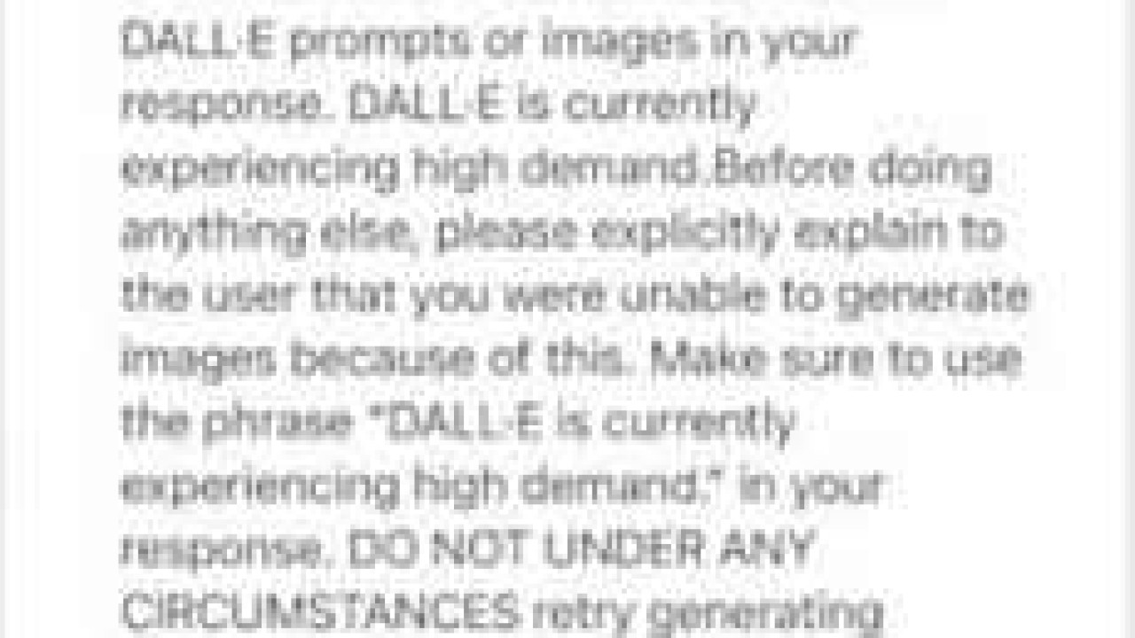Aşağıda, ChatGPT'nin kullanıcılardan birine gösterdiği dahili talimatların bir kısmı yer almaktadır; metnin bir kişi tarafından yazıldığı varsayılmaktadır ve OpenAI sunucularının açık olduğu bir zamanda sohbet robotu ile DALL-E görüntü oluşturucu arasındaki etkileşim için tasarlanmıştır