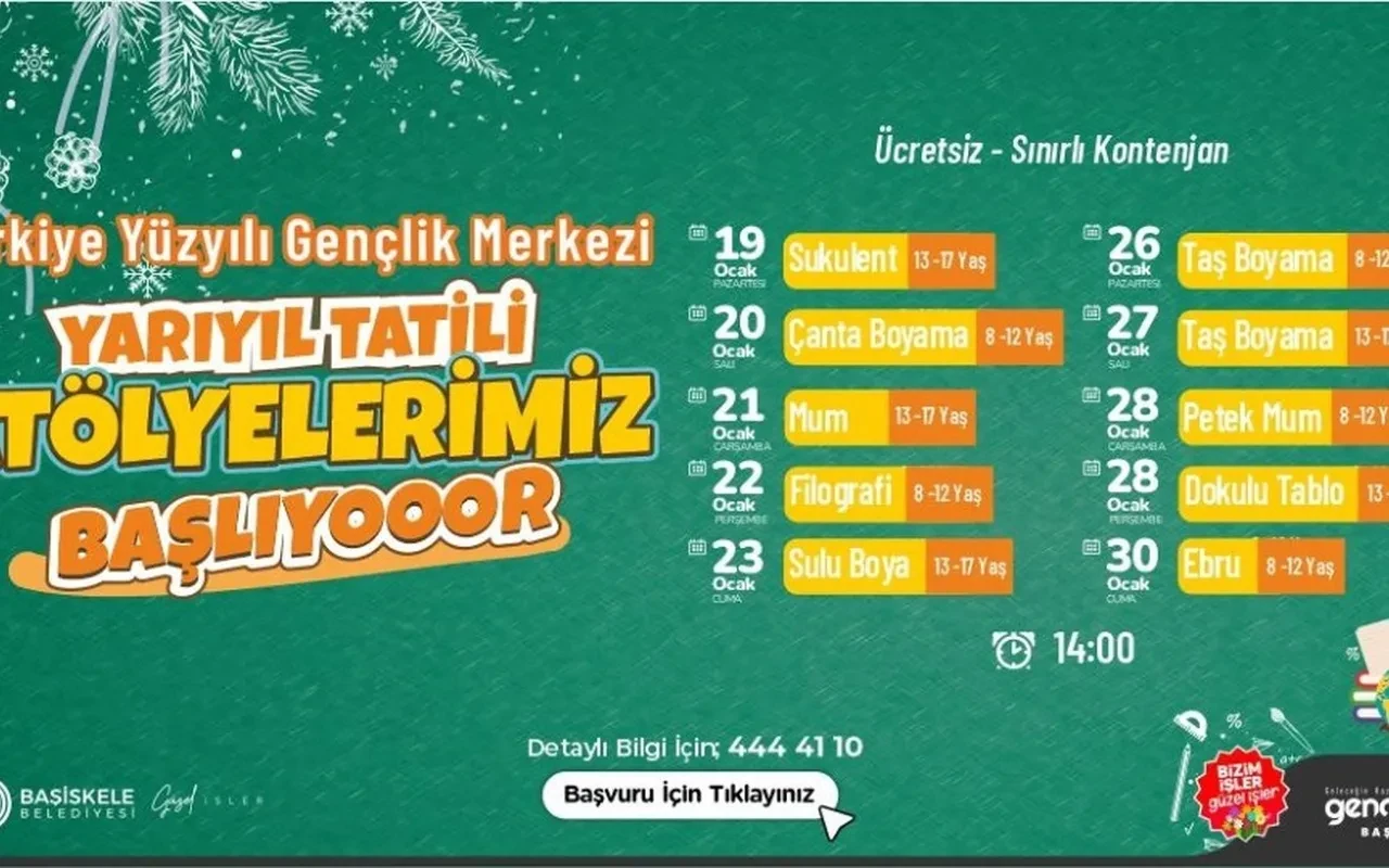 Başiskele Belediyesi, yarıyıl tatilinde öğrenciler için atölyeler düzenliyor. Program 19 Ocak’ta başlayacak.