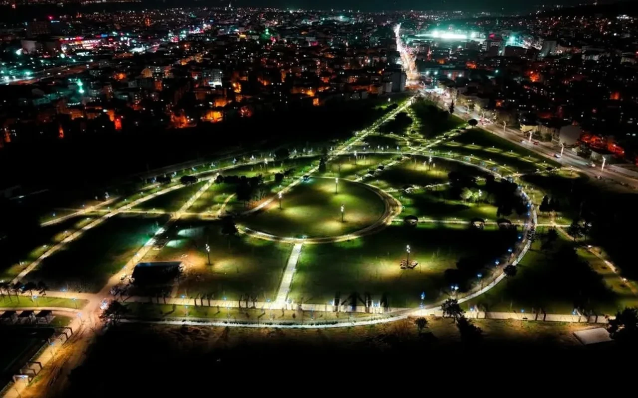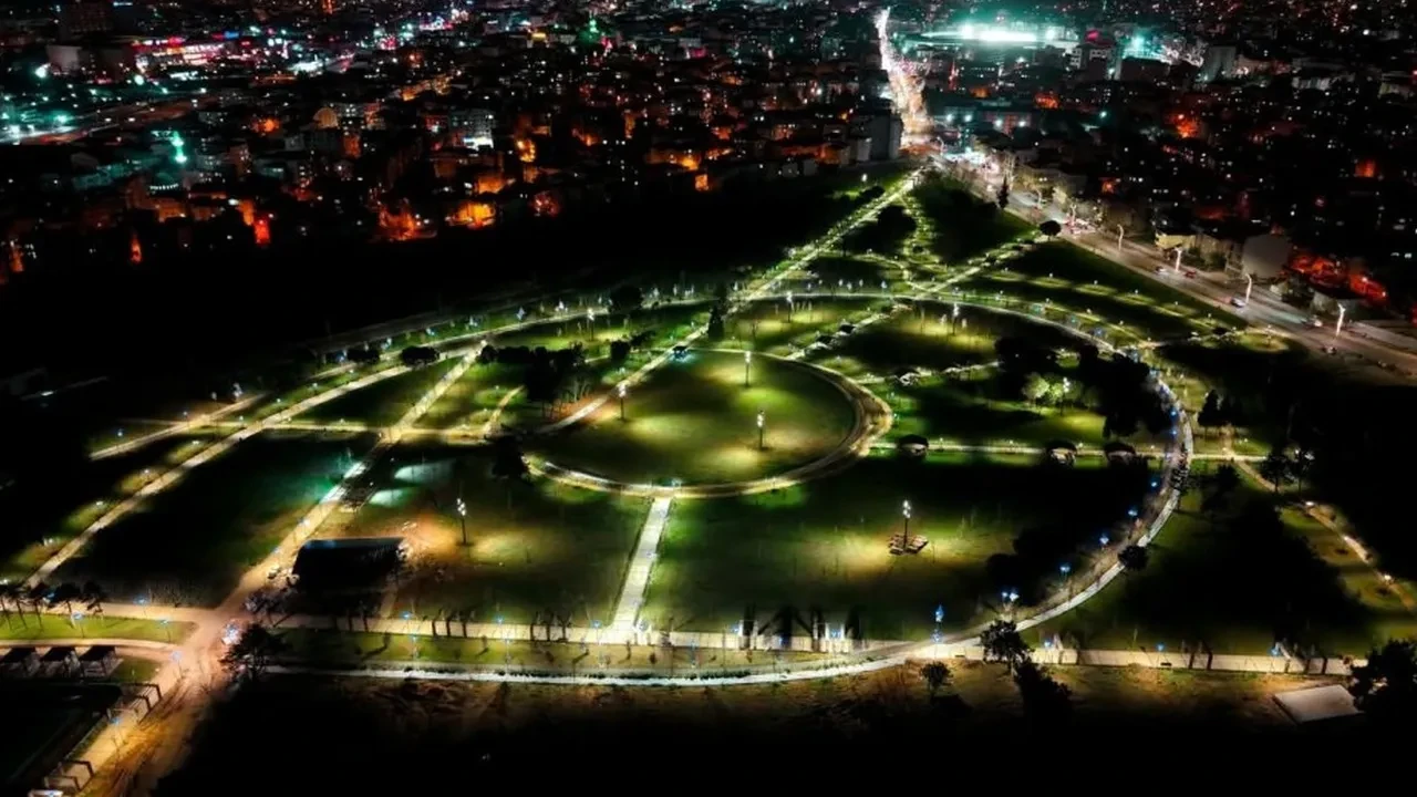 Gece ışıklandırmasıyla kaydedilen drone görüntüleri, parkın estetiğini gözler önüne serdi. Peyzaj düzeni övgü topladı.
