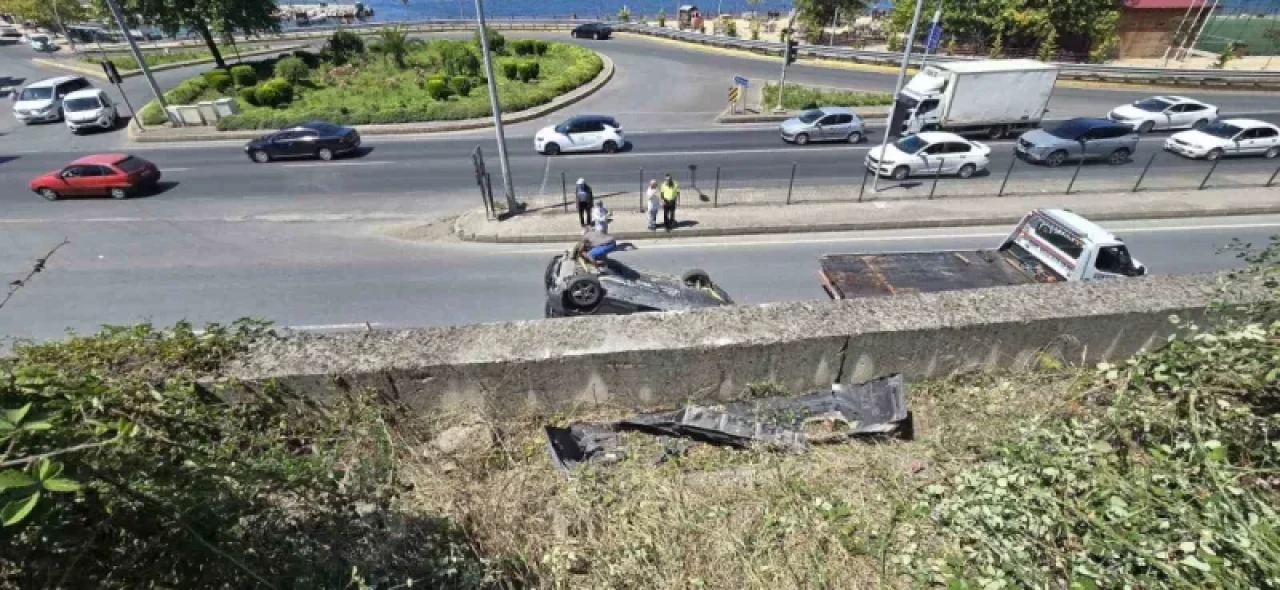 Olay, Halıdere Yalı Mahallesi Taşlıburun Caddesi’nde meydana geldi. İddiaya göre, sürücü A.K., garajdan 41 AK 599 plakalı otomobilini çıkarttı. Çalışır vaziyetteki aracından inen A.K., garajın kapısını kapatmak için otomobilden indi. O esnada kendi kendine hareket eden otomobil, 6 metre yükseklikten D-130 Karayolu’na uçarak takla attı. O esnada araçta yolcu kısmında bulunan kadın yaralandı. Kazayı gören vatandaşlar hem 112 Acil Çağrı Merkezine haber verdi hem de yardıma koştu. Vatandaşlar araçta bulunan kadını çıkarırken olay yerine sağlık, polis ve itfaiye ekipleri sevk edildi. Kısa sürede olay yerine gelen sağlık ekipleri, yaralı kadını ambulansla hastaneye kaldırdı.Kaza sebebiyle uzun araç kuyrukları oluştu. Aracın yoldan kaldırılmasıyla trafik eski seyrine döndü. Polis olayla ilgili inceleme başlattı.