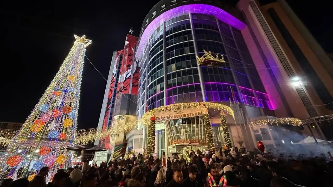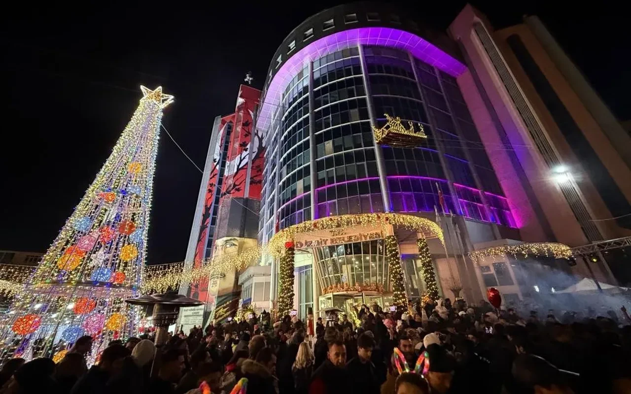 Vatandaşlar yeni yıl dileklerini Belsa Plaza önündeki ağaca yazdı. Belediye tarafından hazırlanan süslemeler beğeni topladı.