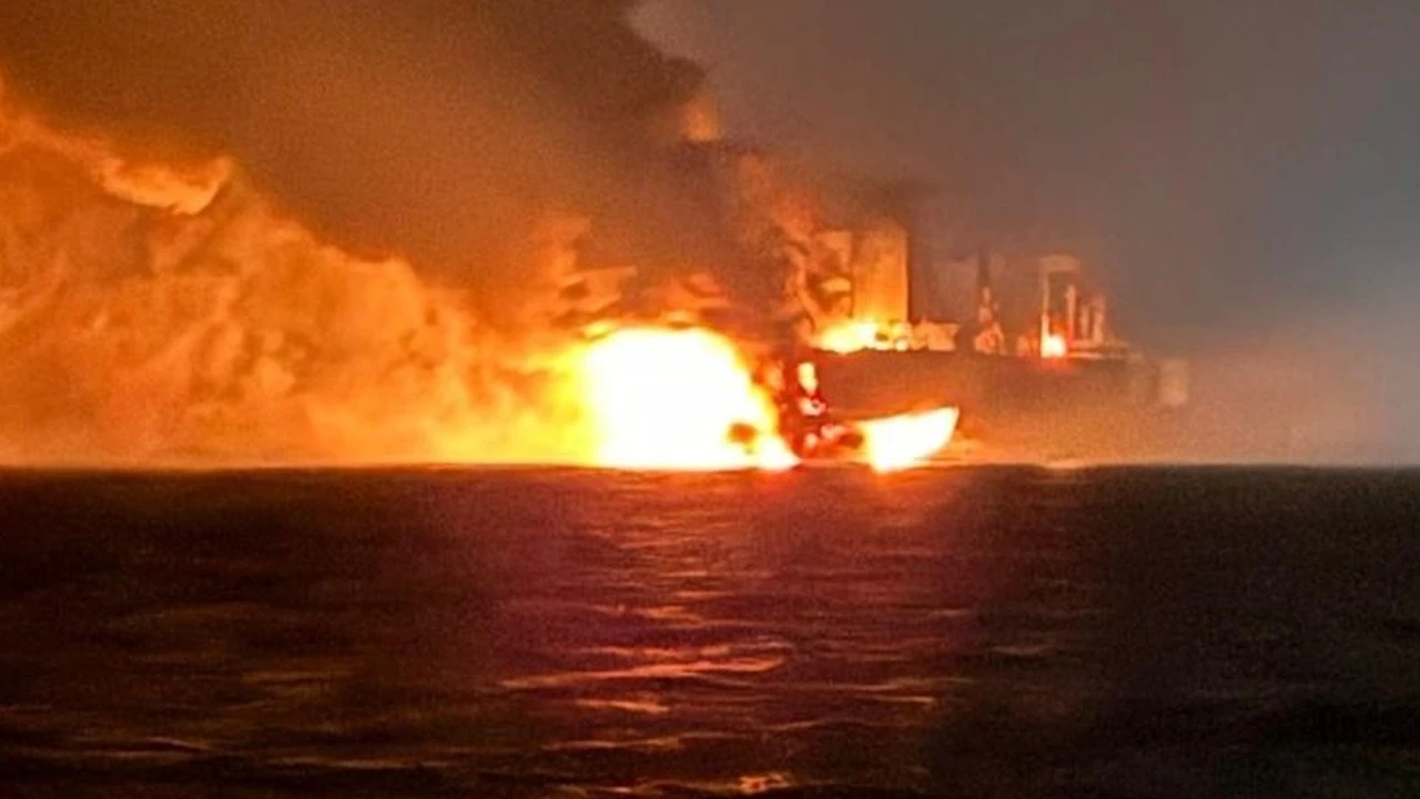 Yabancı menşeli gemideki yangının görüntüleri paylaşıldı. Olay yerine itfaiye ekipleri sevk edildi.