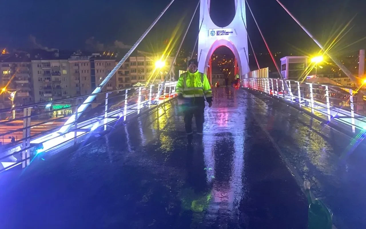 Kocaeli Büyükşehir Belediyesi üst geçitlerde buzlanmayı engellemek için özel solüsyon kullanıyor. Çalışmalar kış boyunca aralıksız devam edecek.