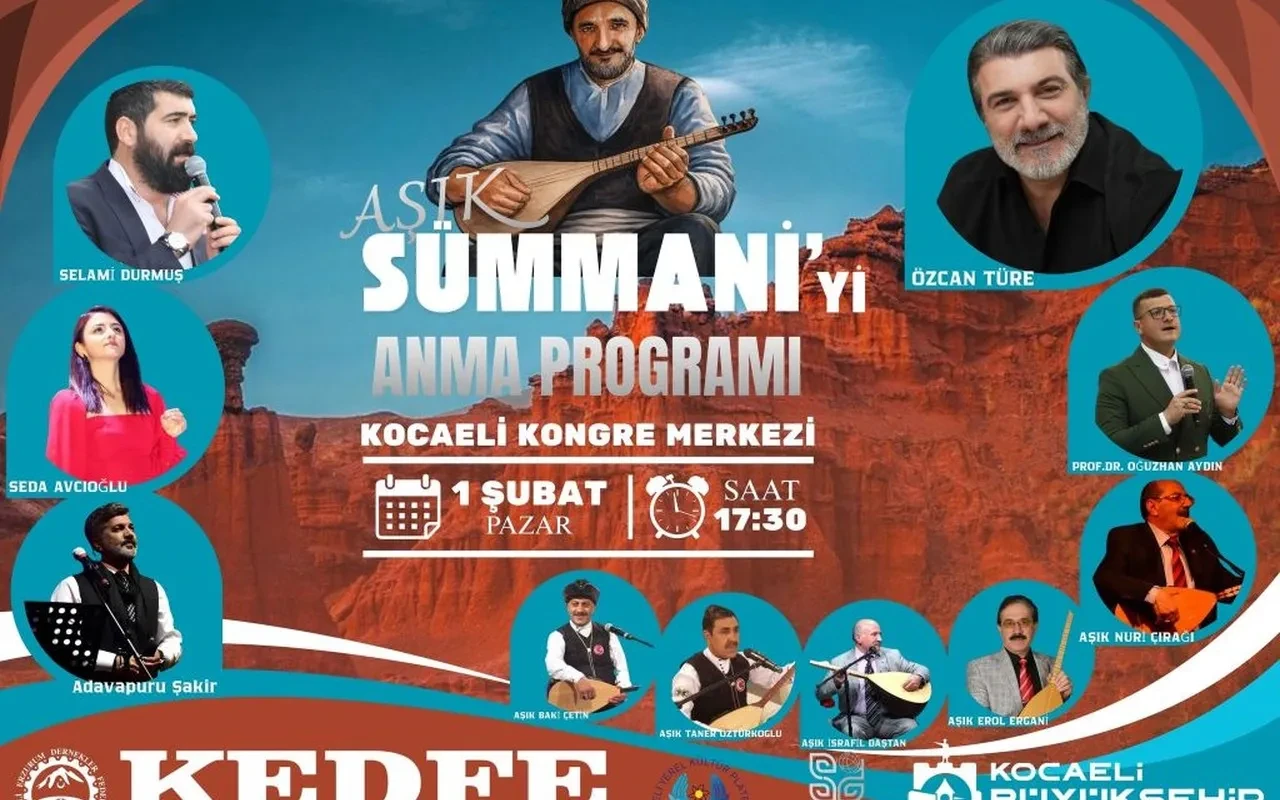 Kocaeli Erzurum Dernekler Federasyonu, Âşık Sümmani’yi anmak için özel bir etkinlik hazırladı. Program 1 Şubat’ta Kocaeli Kongre Merkezi’nde gerçekleşecek.