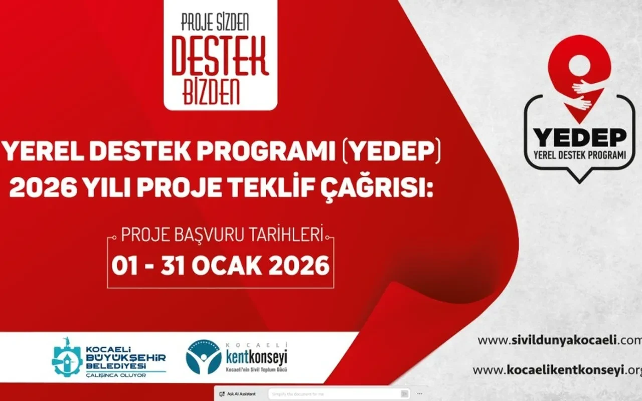 Kocaeli Büyükşehir Belediyesi, sivil toplumu güçlendirmek için YEDEP kapsamında yeni proje çağrısı yaptı. Program, katılımcı yerel yönetim anlayışını yaygınlaştırmayı hedefliyor.