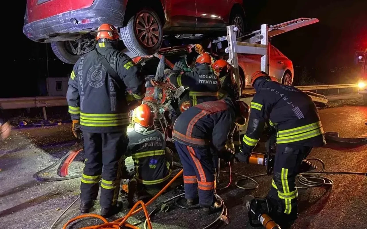 Kamyonetin ön kısmı tırın altına girdi arka kısma ise taşınan araç baskı yaptı. İtfaiye ekipleri vinçle güvenlik önlemi alarak kurtarma çalışması yaptı.