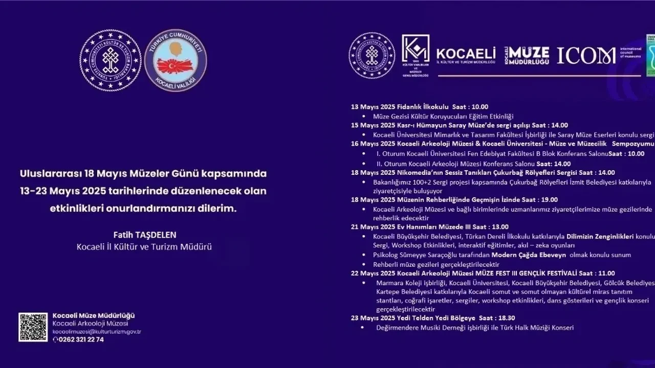 Kocaeli'nin zengin kültürel mirasını yansıtan müzeler, bu özel günde ziyaretçilerine kapılarını açacak. Detaylı etkinlik programı ilerleyen günlerde Kocaeli İl Kültür ve Turizm Müdürlüğü tarafından duyurulacaktır.