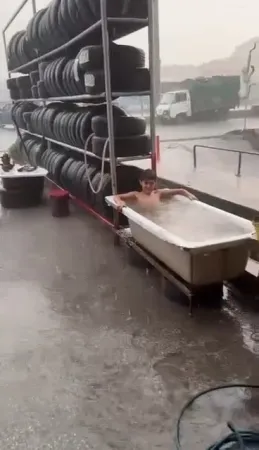 Körfez’de de bir çocuk yağış sırasında oto lastik dükkanının önünde bulunan küvete girdi, ardından küvetten çıkarak çatıdan akan suya koştu. Bu anlar da saniye saniye kaydedildi. Bu olumsuz hava koşulunu fırsata çevirmek isteyen bir genç de, eline aldığı sabunla saçını köpürterek yıkamaya başladı. Şampuanla köpürttüğü saçını yağmur suyuyla yıkayan genci görüntüleri sosyal medyada da ilgi gördü.